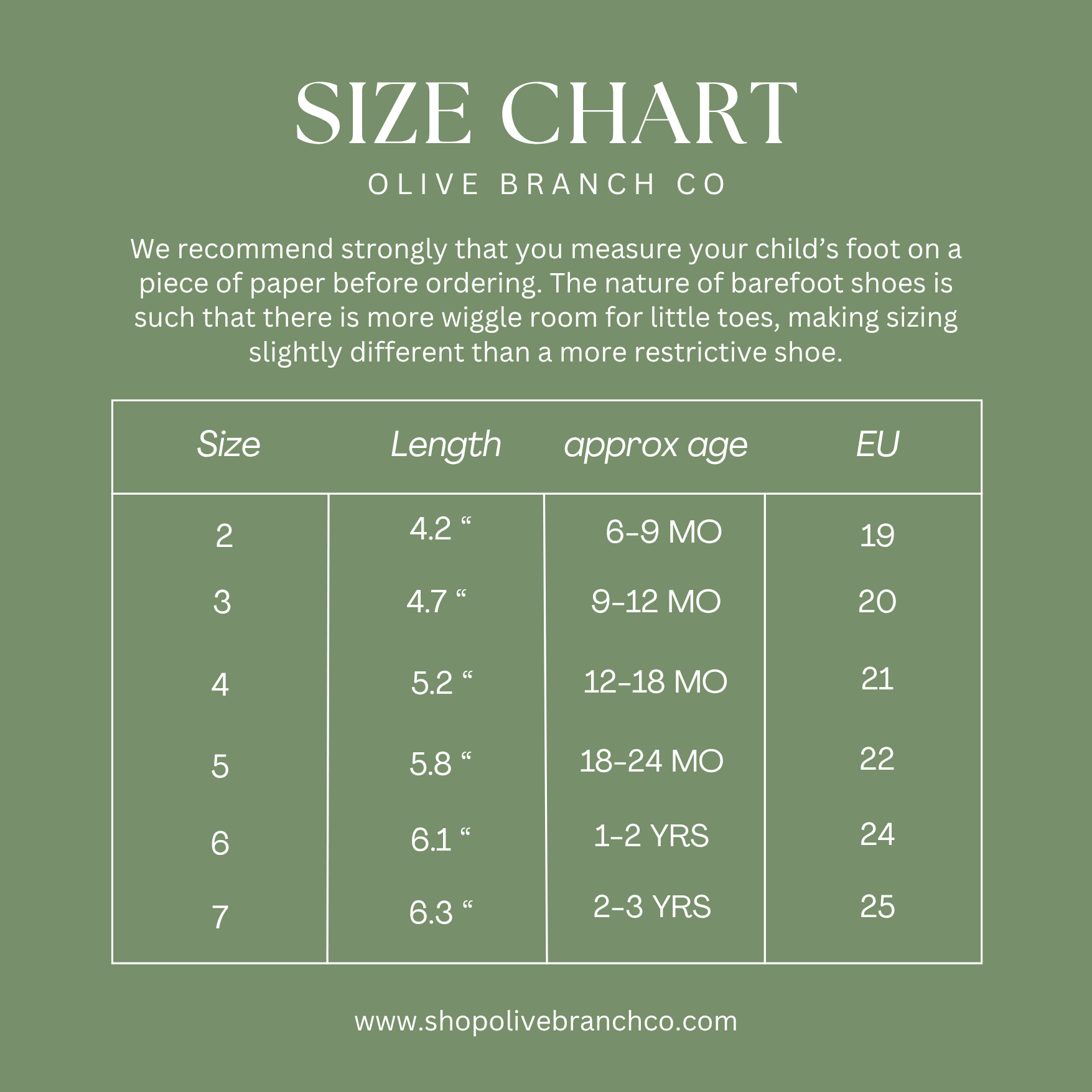 To properly size your child, we recommend that they stand on a piece of paper while you mark at their big toe and heel. This will provide the proper measurement in inches to coordinate with our Size Chart. Add around 0.25–0.5 inches for socks and growth. If between sizes, we recommend you size up.